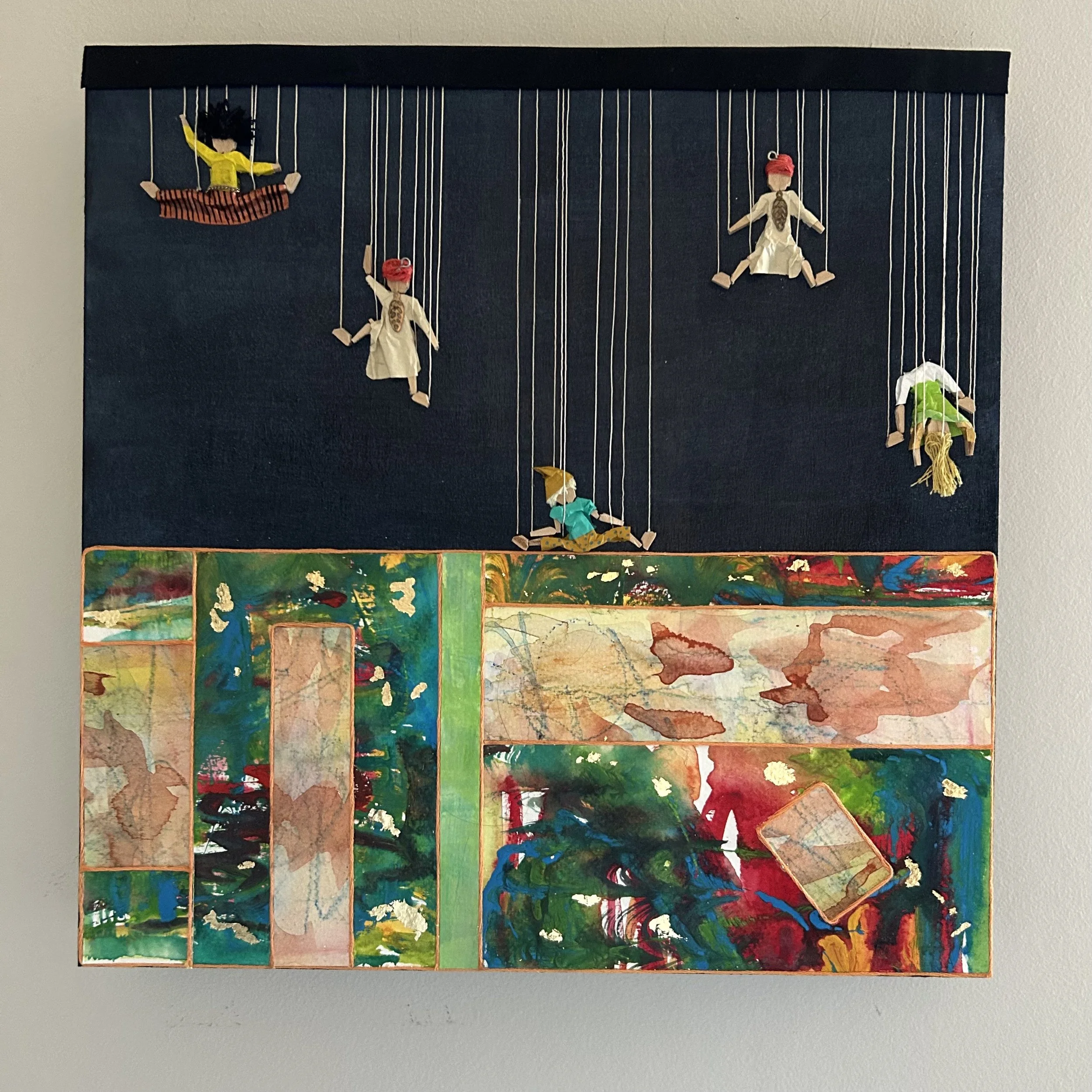 Medium Work That delicious decision to commit to getting what you love and bravely sizing up in your art collecting. Letting Go $225.00 The freedom of play.Mixed media on wood panel, 12×12” Strung Up $250.00 Puppetry practice.Mixed media on gallery wood panel, 12×12”