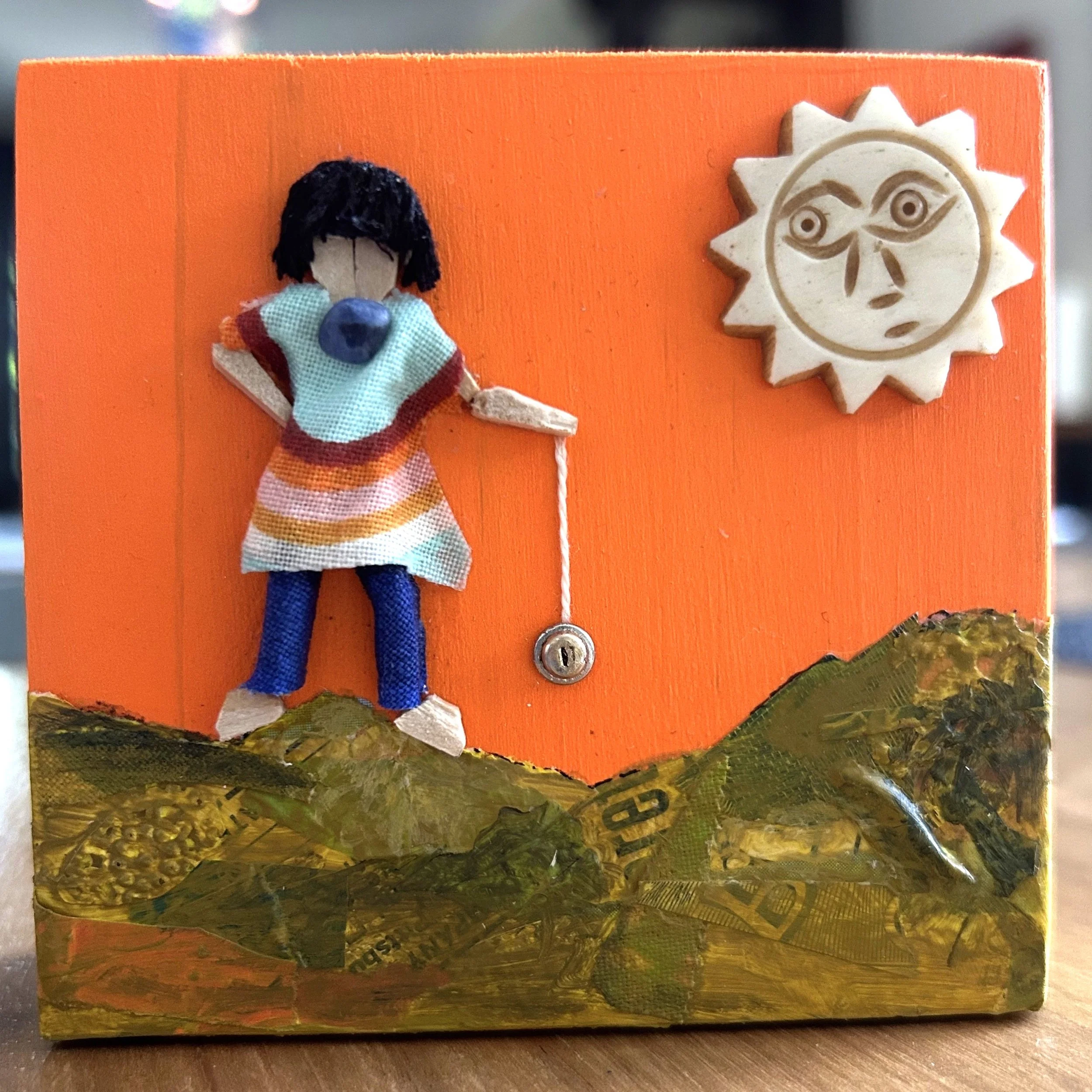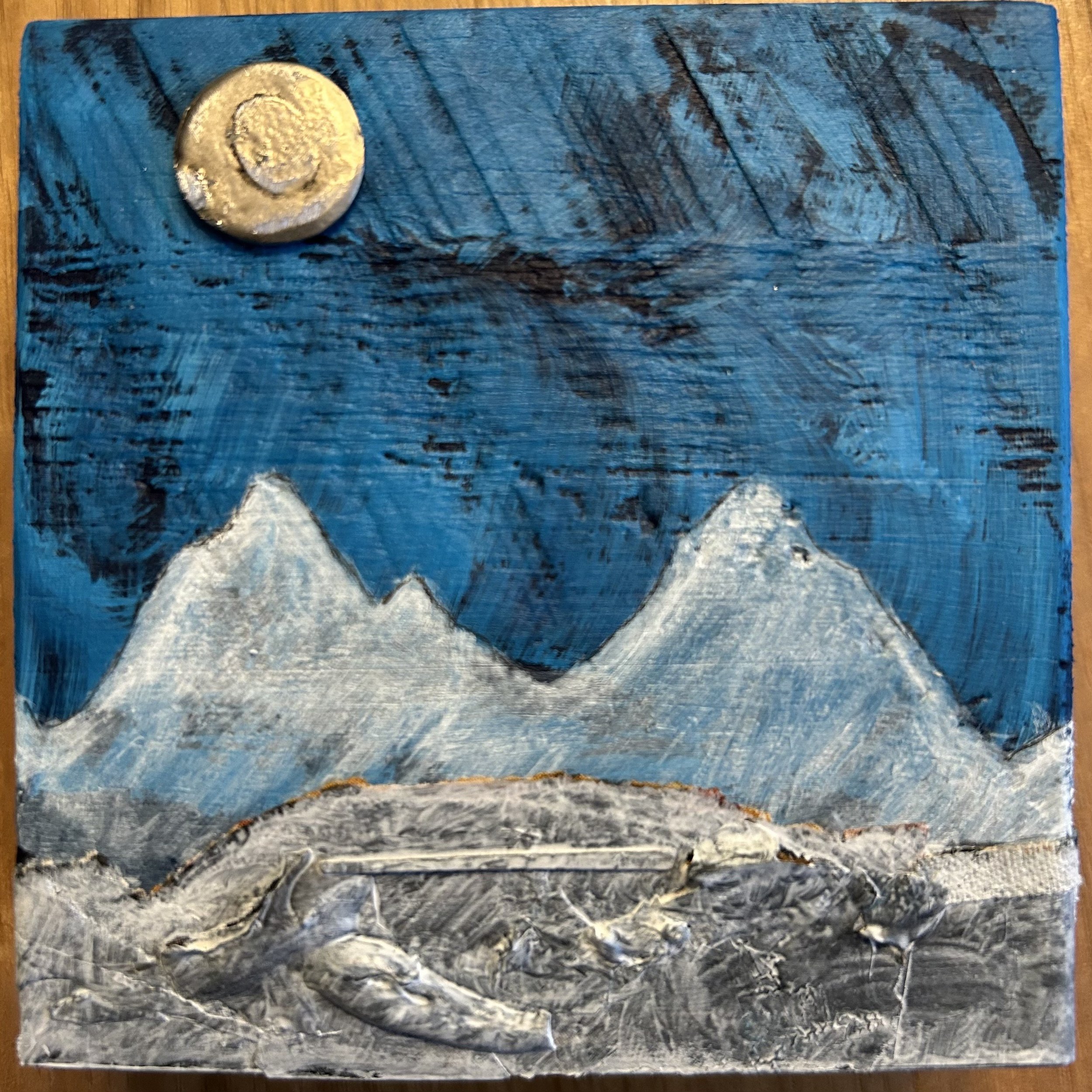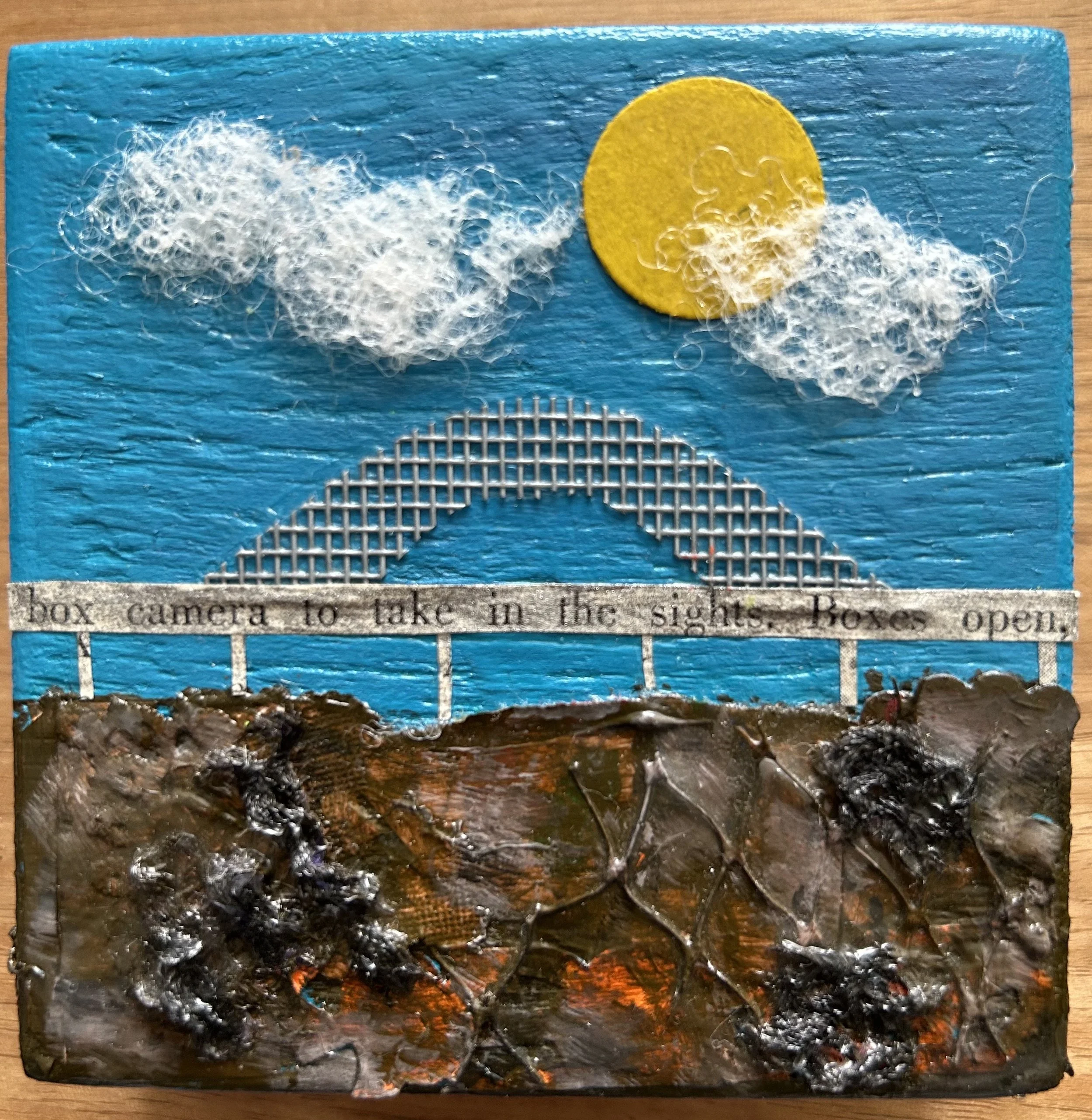 On chunky 3.5 x 3.5” blocks, these artworks are perfect for sitting on a shelf or windowsill. That said, hanging hardware is affixed for a wall mounting option.